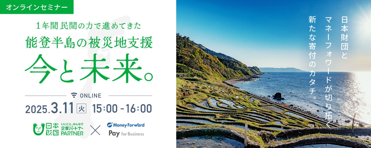 【3/11開催】無料ウェビナー「1年間民間の力で進めてきた能登半島の被災地支援”今”と”未来”。日本財団とマネーフォワードが切り拓く新たな寄付の”カタチ”。」を開催します