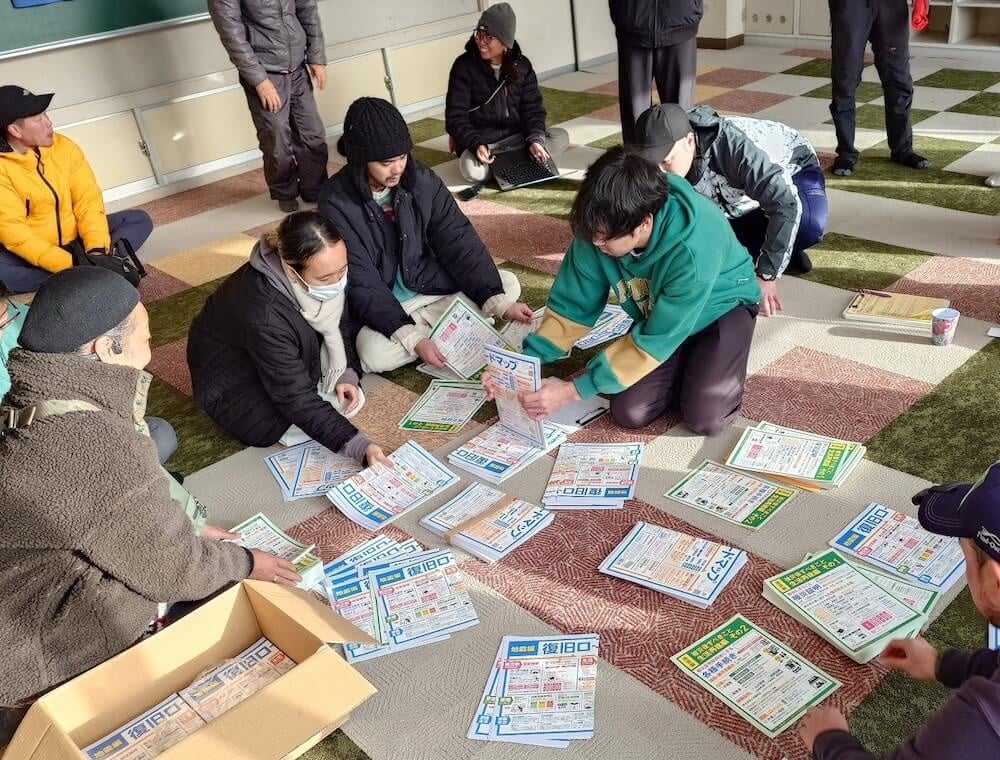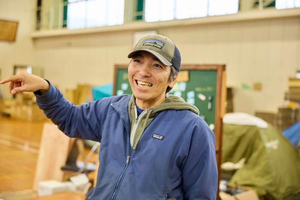ボランティアの拠点をつくることも、重要な結の役割だと前原さんは話します。能登半島地震では、七尾市にある旧西岸小学校体育館をボランティアの滞在拠点としました。