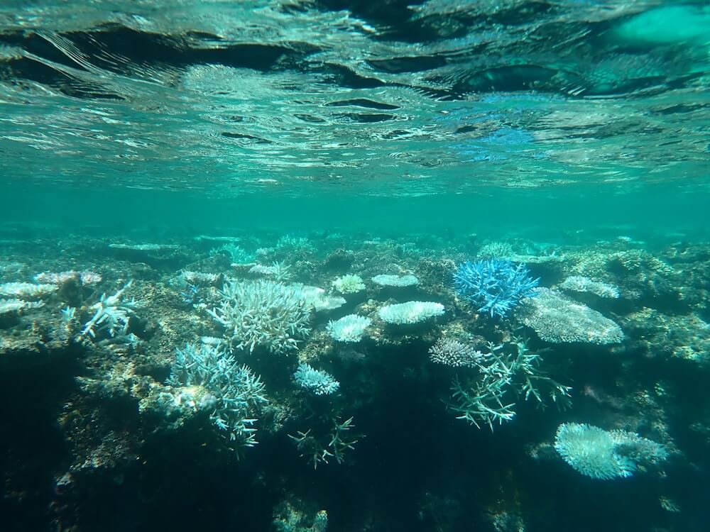 海の水の温度が上がることで、海の生き物たちの生態系(せいたいけい)が乱(みだ)れたり、サンゴが白くなって死んでしまう「白化現象(はっかげんしょう)」が世界中の海で起こっています。日本では、沖縄県(おきなわけん)の石垣島(いしがきじま)や宮古島(みやこじま)などでこの現象(げんしょう)がかなり進んでいます。