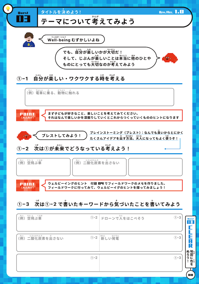 2024年に開催(かいさい)される第6回大会の作品テーマは「Well-being(ウェルビーイング)をデザインしよう(※2)」。今回はこのテーマで、「教育版(きょういくばん)マインクラフト」を使った自由研究の作品作りに取り組んでみましょう。