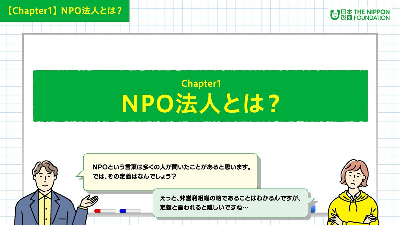 日本財団は、長年にわたり国内外の多様な社会課題解決に取り組むNPO・公益活動団体を支援してきました。その知見やネットワークを活かし、NPO運営に役立つ実践的な知識やノウハウを、動画や記事を通じて分かりやすくお届けします。