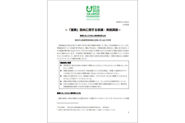 日本財団は、2017年11月に『「里親」意向に関する意識・実態調査』を実施いたしました。
