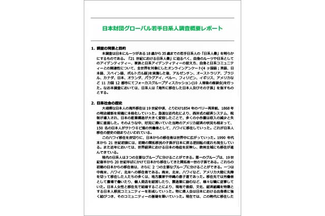 若者の日系人の方たちにとって、日系人としてのアイデンティティーは継承されており、日本との繋がりや他国の日系人との交流を図りたいという希望があることが分かりました。