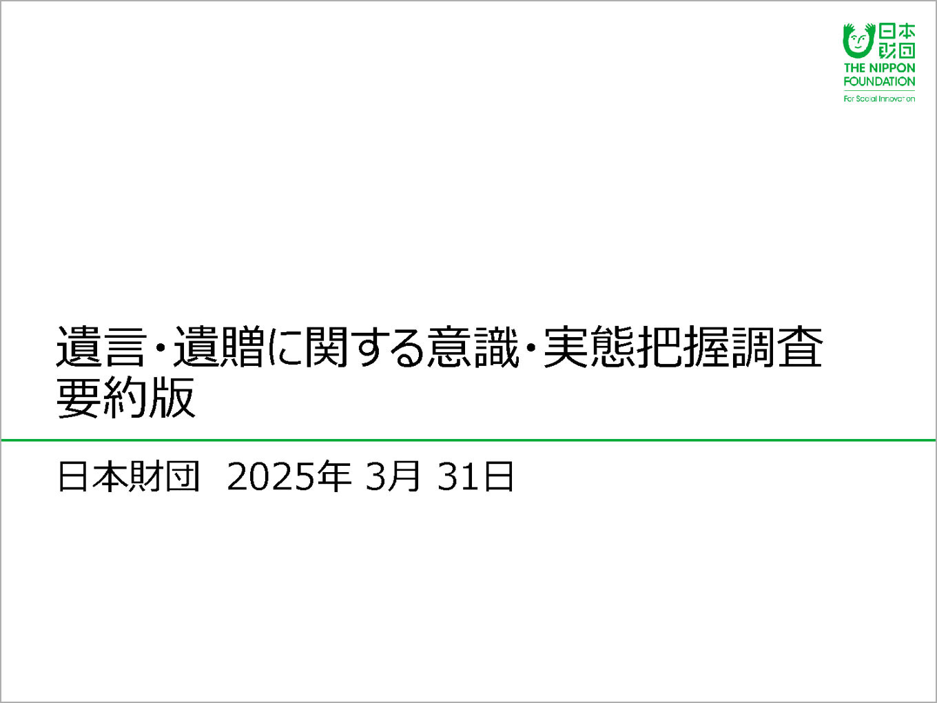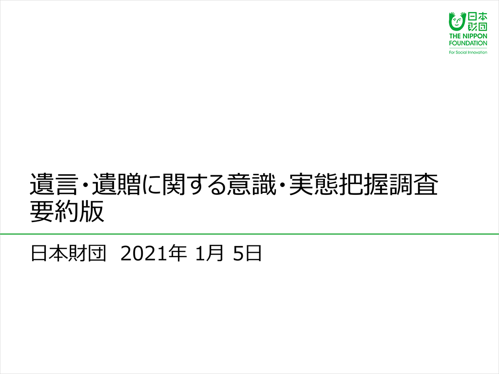 日本財団では、日本における遺贈の普及の実態を知るため「遺言・遺贈※に関する意識・実態把握調査」を行っています。この度、60代、70代の男女2,000人に対して行った「遺言・遺贈に関する意識・実態把握調査」の結果を発表いたします。