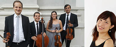 出演者 写真左:(左から)Joachim Kelber、Peter Schneider、Helena Schoner、Guillaume Pasch、写真右:Hitomi Nakayama