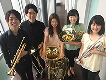 出演者 (左から)松村、岩倉、横内、長岐、丸山 Brass Pietro 丸山 菜津紀(まるやま なつき)/ トランペット 松村 栄司(まつむら えいじ)/ トランペット 長岐 愛実(ながき