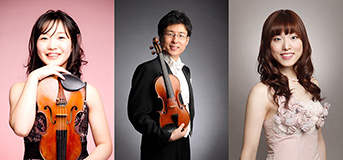 出演者 左から 山縣郁音、川上拓人、坂本彩 山縣 郁音(やまがた いくね)/ ヴァイオリン 川上 拓人(かわかみ たくと)/ ヴァイオリン 坂本 彩(さかもと あや)/ ピアノ