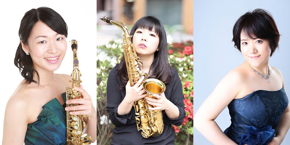 出演者 写真左から、熊岸奈津美、川越明由美、中野裕子 熊岸 奈津美(くまぎし なつみ)/ ソプラノ・サクソフォーン 川越 明由美(かわごえ あゆみ)/ アルト・サクソフォーン 中野 裕子(な