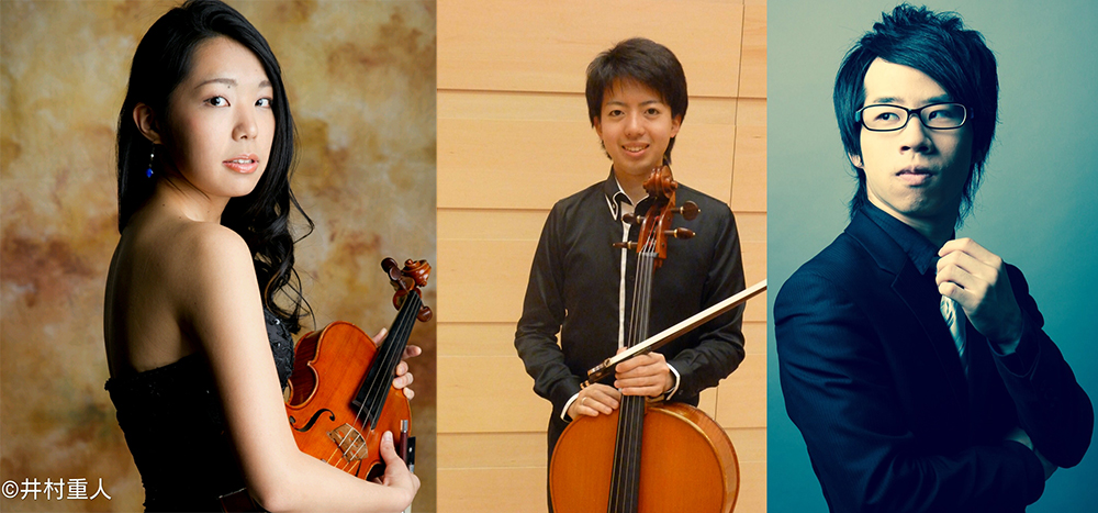 出演者 写真左から、山田沙織、小林奏太、丸尾祐嗣 レゾナンス・トリオ 山田 沙織(やまだ さおり)/ ヴィオラ 小林 奏太(こばやし そうた)/ チェロ 丸尾 祐嗣(まるお ゆうじ)/ ピアノ