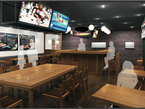 E’s CAFE 店内イメージ 日本財団は、障害者就労支援「はたらくNIPPON!計画」の一環として、一般社団法人パラSCエスペランサを支援し、カフェ&スポーツダイニングバー「E’s CAFE(イ