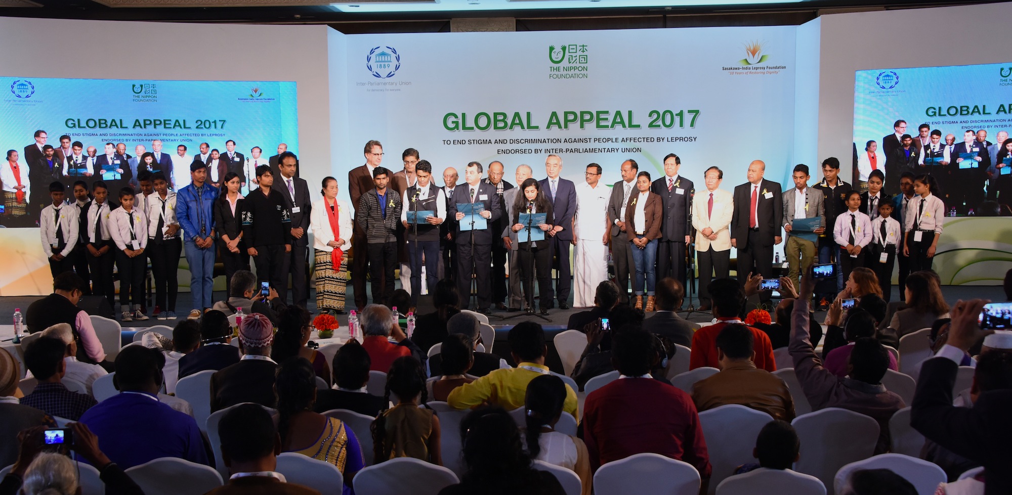 グローバル・アピール2017宣言式典の模様 日本財団は、列国議会同盟(IPU)と共にハンセン病患者と回復者に対する社会的差別の撤廃に向けた「グローバル・アピール2017」をインドのニューデリーで発表