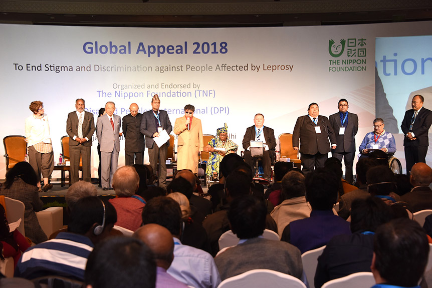 グローバル・アピール宣言文を読み上げるDPIの各国代表 日本財団は、障害者インターナショナル(Disabled Peoples’ International)と共に、ハンセン病患者と回復者に対する