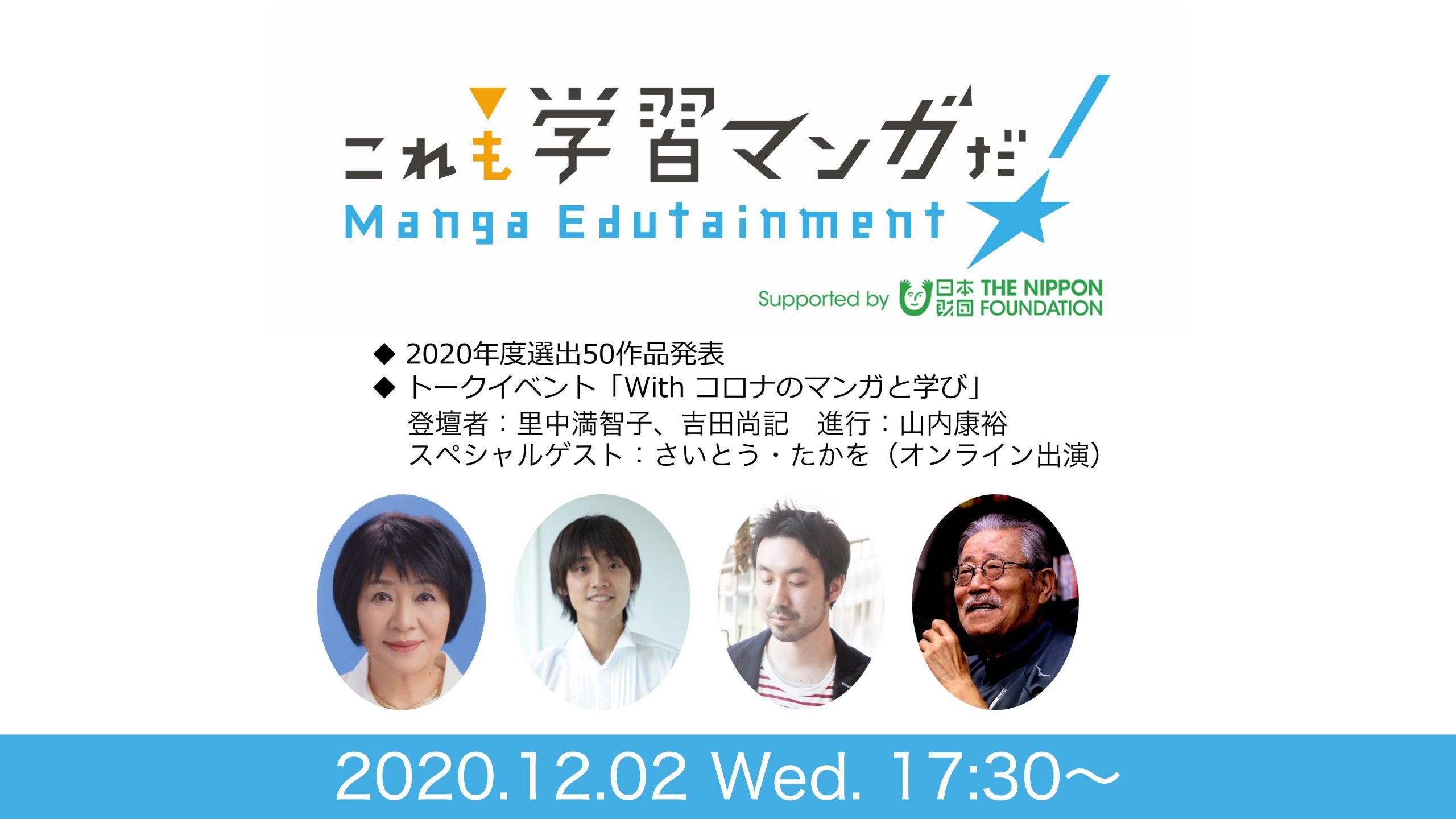 日本財団と一般社団法人マンガナイトは「これも学習マンガだ!」選書発表イベントを12月2日(水)に開催いたします。