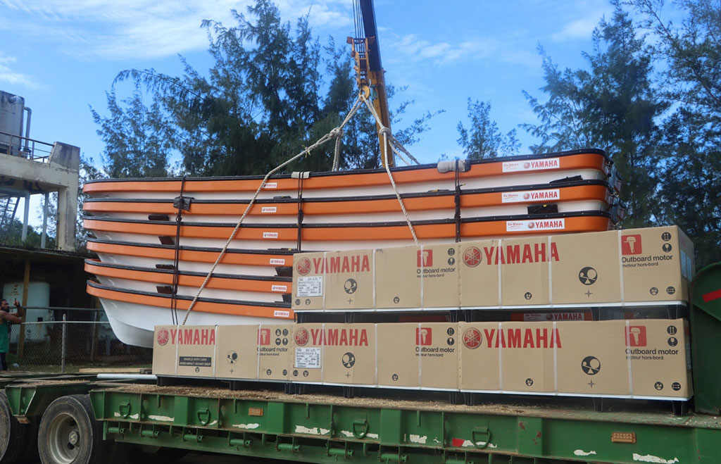 今般、小型ボート18隻、島間の移動にも活用できる中型ボート9隻を贈呈しました。それぞれ、漁具やライフジャケット等の必要な備品を設置の上、順次被災住民へ供与される予定です。住民の生業である漁業の復活だけでなく、離島間の移動手段の確保・復活につながることが期待できます。
