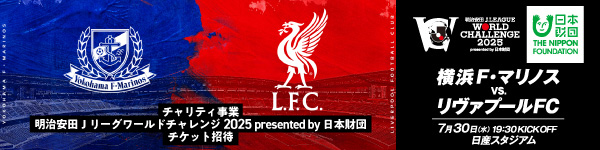 2025年7月30日(水)日産スタジアムで開催される「明治安田Jリーグワールドチャレンジ2025 presented by日本財団」に、抽選で小中学生と同伴者ペア750組1,500名様をご招待いたします