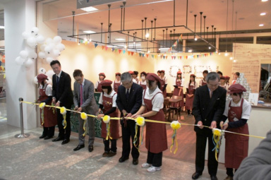 昨年11月にオープンしたいしのまきカフェ「 」(かぎかっこ) 日本財団は外資系ホテル、ヒルトン東京と共同で、宮城県石巻市の高校生が運営する“いしのまきカフェ「 」(かぎかっこ)”のスタッフ