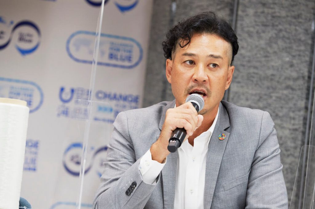 日本財団の海野常務理事は、ALLIANCE FOR THE BLUEに参加する企業の個々の強みを生かしながら、プロジェクトを加速させていきたいと語る。