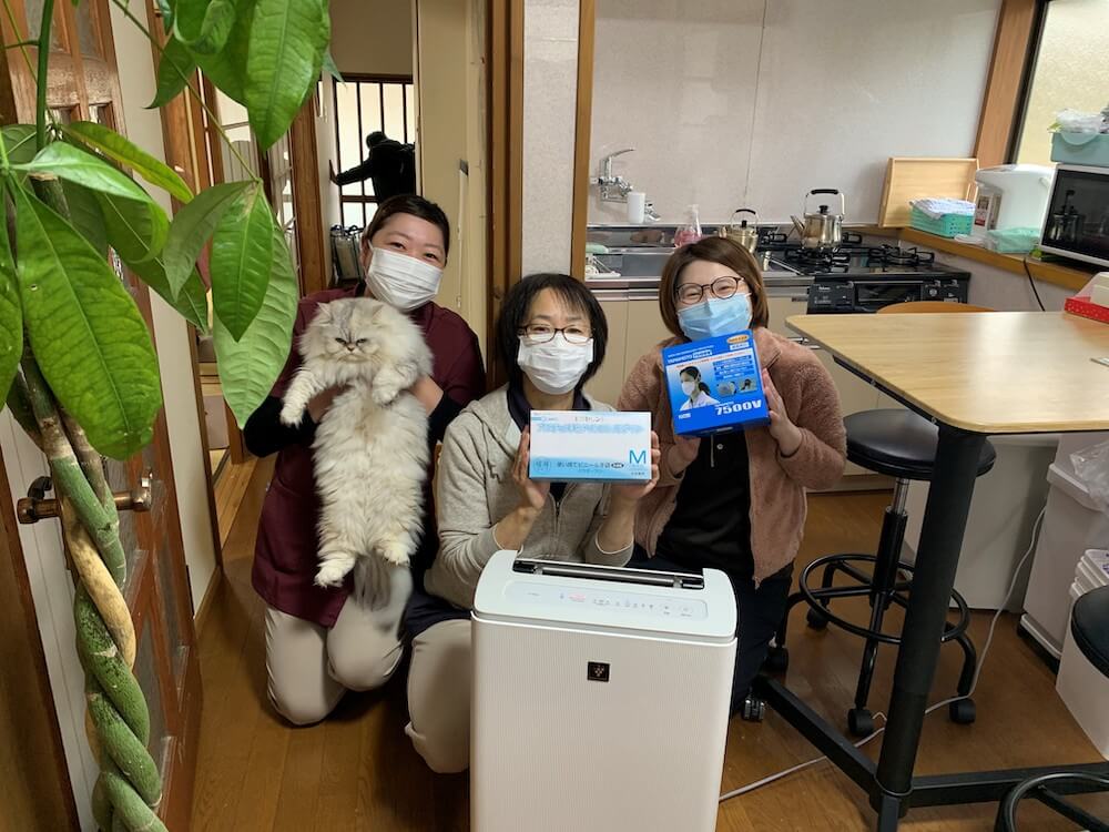 これらが行きわたったことで、個々のスタッフにかかっていた負担や不自由さを取り除くことができました。また訪問回数が多いご利用者さまのご自宅に購入したプラスチック手袋やエプロンを箱ごと設置させていただいたことで、スタッフの業務効率、ご利用者さまの経済的負担の軽減につながっています」