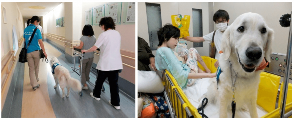 日本は、医療技術は世界最先端である一方で、入院環境の質の点では大きな課題があるといわれている(※資料6)。そのソリューションの1つが、闘病中の子どもやその家族に寄り添いサポートする犬たちの活動だ。