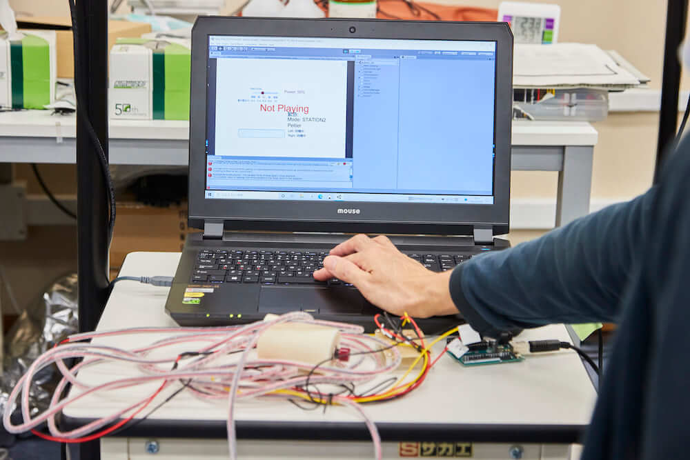 開発にあたりこだわったのは、痛みのデータ収集だ。まずは女性メンバーの生理痛を参考に、基準となる電気刺激の強度を設定。その後、多くの女性に体験してもらい、生理痛の痛みの幅を探っていったという。プロトタイプ(試作品)完成時には、痛みの幅を0〜100パーセントの段階まで変更可能にした。