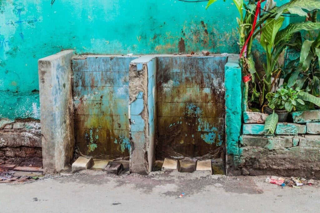 例(たと)えば、地面に穴(あな)をほっただけのトイレが村に1つだけあり、そこをみんなで使っている、という地域(ちいき)もあります。