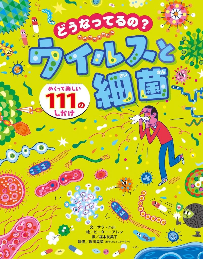病気を引き起こす小さな生きもの、ウイルスや細菌(さいきん)の基礎知識(きそちしき)を、カラフルなビジュアルとめくって楽しい111の仕かけでしょうかいします。