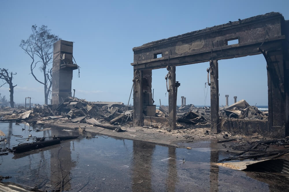 例(たと)えば、アメリカ・ハワイのマウイ島ではとても大きい森林火災(しんりんかさい)が起きました。