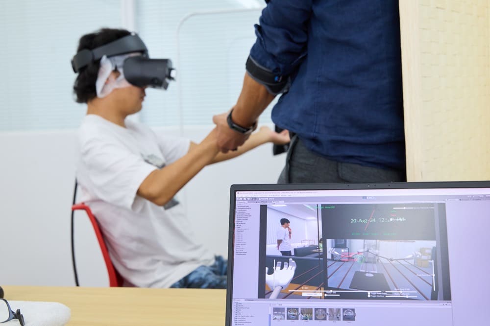 猪俣:現在は週に1回、幻肢痛交流会という場をつくって、リハビリを行いつつ、患者さんの「もっとこうしたらいいんじゃない?」という声を積極的に取り入れながら、“参加型”で一緒に開発を行っています。