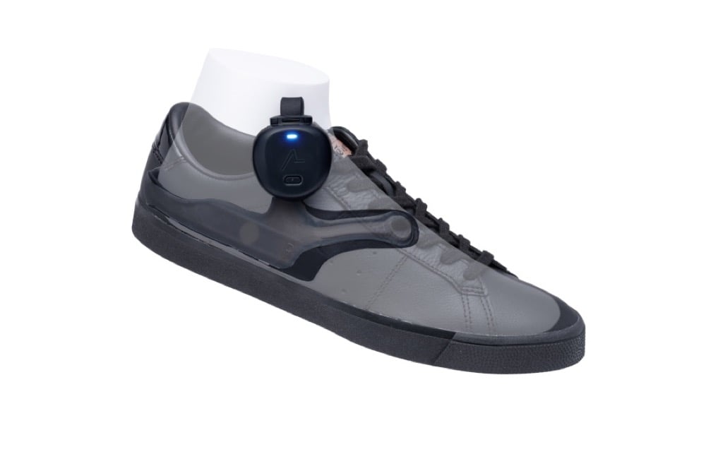 千野さん(以下、敬称略):視覚障害者の方のための歩行ナビゲーション装置です。靴に取り付け、iPhoneのアプリ「あしらせ」と連動させることで目的地まで案内するのですが、最大の特徴は足に伝わる振動によってナビゲーションを行う点です。