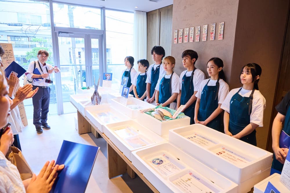 日本財団「海と日本プロジェクト」の助成を受け、海や水産に関わる次世代の人材育成を目的に立ち上げられたプロジェクト「THE BLUE CAMP」(外部リンク)を展開。2024年には全国から選ばれた学生たちが3カ月間、海や漁業、流通を取り巻く現状を漁師や仲買人などの当事者から直接学び、その成果を伝える場として、トップシェフのサポートを受けて期間限定のポップアップレストランをオープンしました。