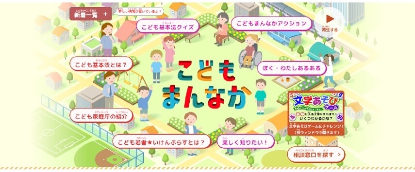 こども家庭庁の子ども向けホームページでは、「こども基本法」やこども家庭庁の取り組みについてわかりやすく紹介しています。また「こどもまんなかアクション」の事例や、「こどもまんなか社会」づくりに役立つニュースや豆知識も解説しているので、ぜひ自分自身のアクションを起こすために役立ててください。