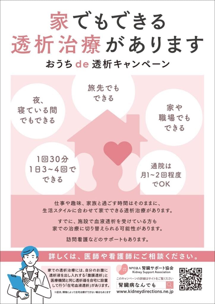 だからこそ病院選びはとても大事ですし、透析を受ける患者さんには、あらかじめ通院以外の選択肢があることを知っておいてほしいと思います。