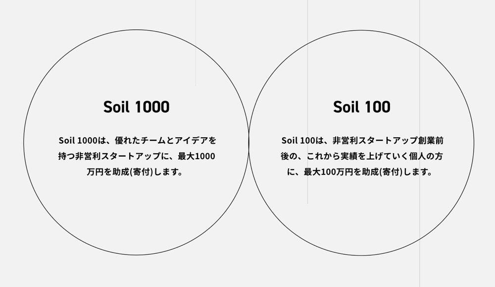 細井:主に「Soil 1000」と「Soil 100」という2つの助成プログラムを提供しています。