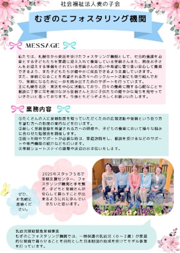 古家:まずは里親支援センターの増設です。現在、札幌市内には市から委託された里親支援センターと、麦の子会を含めた民間の里親支援機関が2カ所あります。私たちは3カ所全てが市から委託されたセンターとなることを目指しています。
