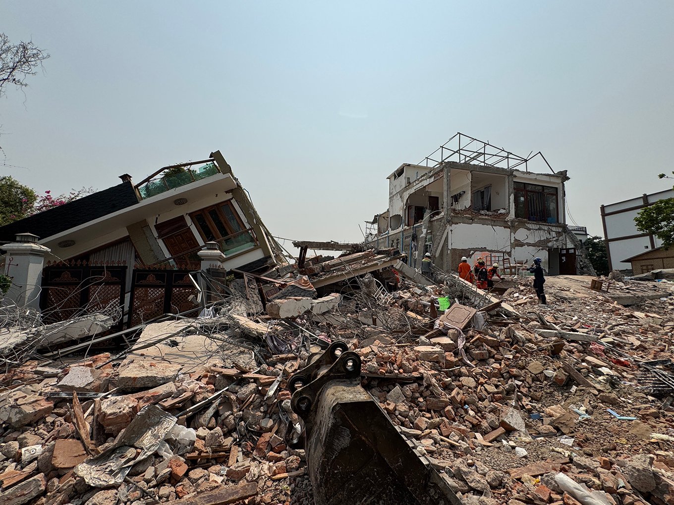 全壊した中学校(4月3日 ミャンマー・ザガイン) 2025年3月28日に発生したミャンマー大地震で被災された皆さまに心よりお見舞い申し上げます。今回発生したミャンマーのマンダレーを中心とした大規模