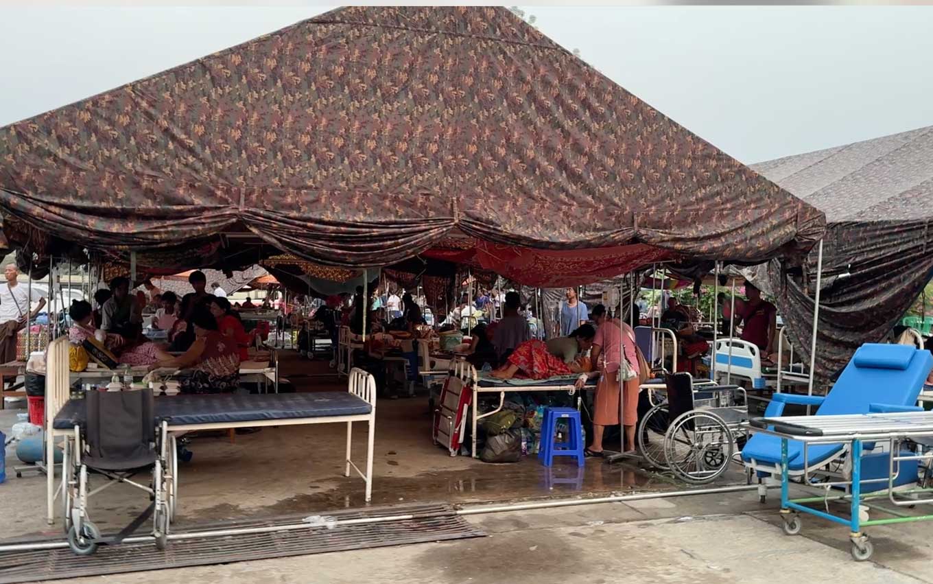 病院が倒壊したためテントを張って医師や看護師がけが人の治療にあたる(ネピドー連邦領) ミャンマー国民和解担当日本政府代表でもある会長の笹川陽平は、2025年4月3日に、震源地に近いミャンマー中