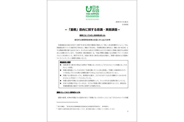 日本財団は、2017年11月に『「里親」意向に関する意識・実態調査』を実施いたしました。