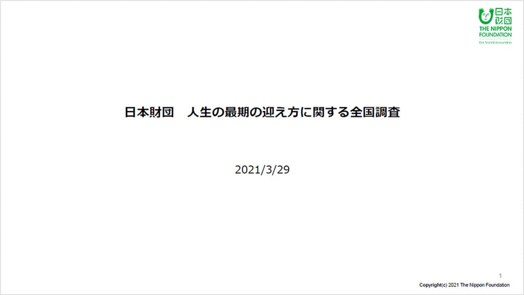 日本財団は、67歳~ 81歳の方(当事者)と35歳 ~59歳の高齢の親を持つ方(子世代)に対して、 人生の最期の迎え方に関する全国意識調査を実施しました。