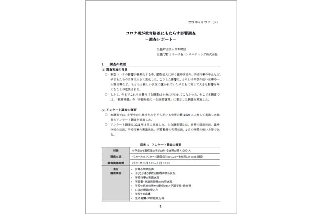 コロナ禍が子どもの教育格差と非認知能力にもたらす影響を調査