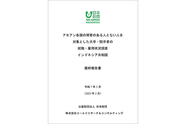 日本財団は、インドネシアの調査研究機関 PT Trisaka Wahana Tenggara に調査を委託し、同国における障害者の高等教育と雇用の現状を明らかにしました。