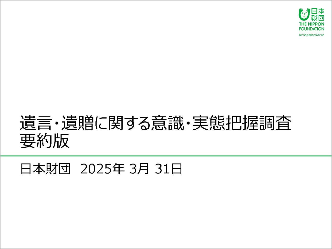 日本財団では、日本における遺贈の普及の実態を知るため「遺言・遺贈※に関する意識・実態把握調査」を行っています。この度、60代、70代の男女2,000人に対して行った「遺言・遺贈に関する意識・実態把握調査」の結果を発表いたします。