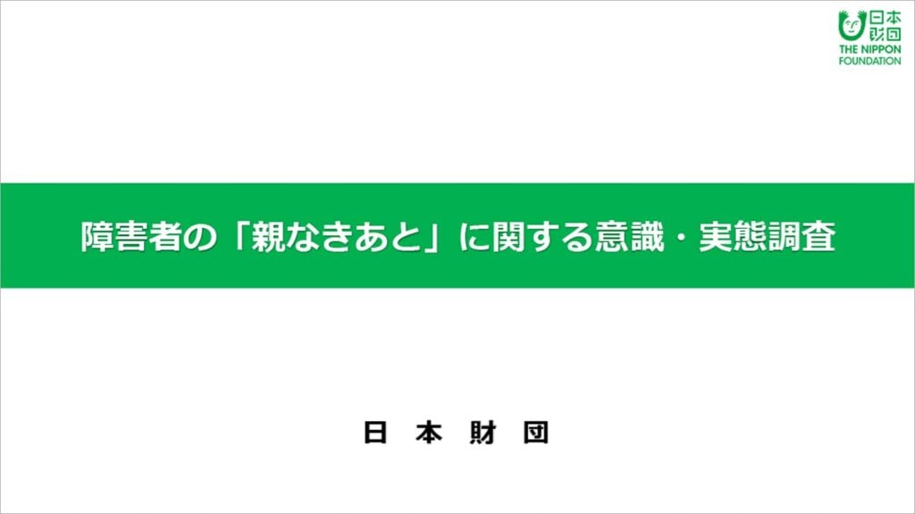 障害のある人の家族(親・きょうだい等)を対象に、「親なきあと」に関する意識や不安、具体的な課題、将来に向けた準備状況、求められる支援等を明らかにすることを目的として、全国規模のオンライン調査を実施しました。
