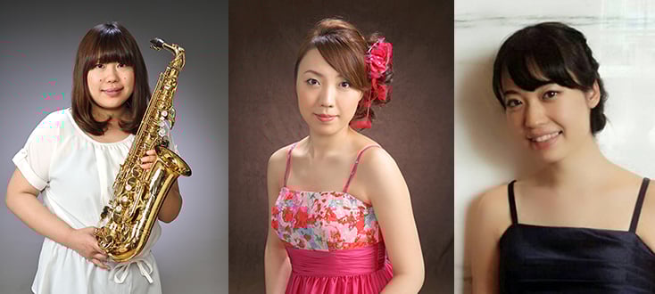 出演者 板垣 貴子(いたがき たかこ)/サクソフォン 上野 なつき(うえの なつき)/サクソフォン 上野 紗英 (うえの さえ) /ピアノ 曲目 オーシャンゼリゼ チョコレート・ダモー