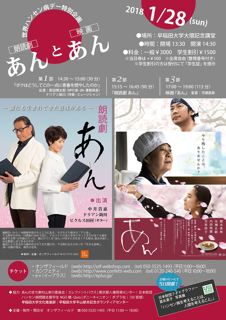 樹木希林さん主演で映画化され、世界約50カ国で上映されるほどの大ヒットとなったドリアン助川さんの小説「あん」は、主人公がハンセン病の元患者で、彼女と人生の道を少しだけ踏み外した男性との交流の物語
