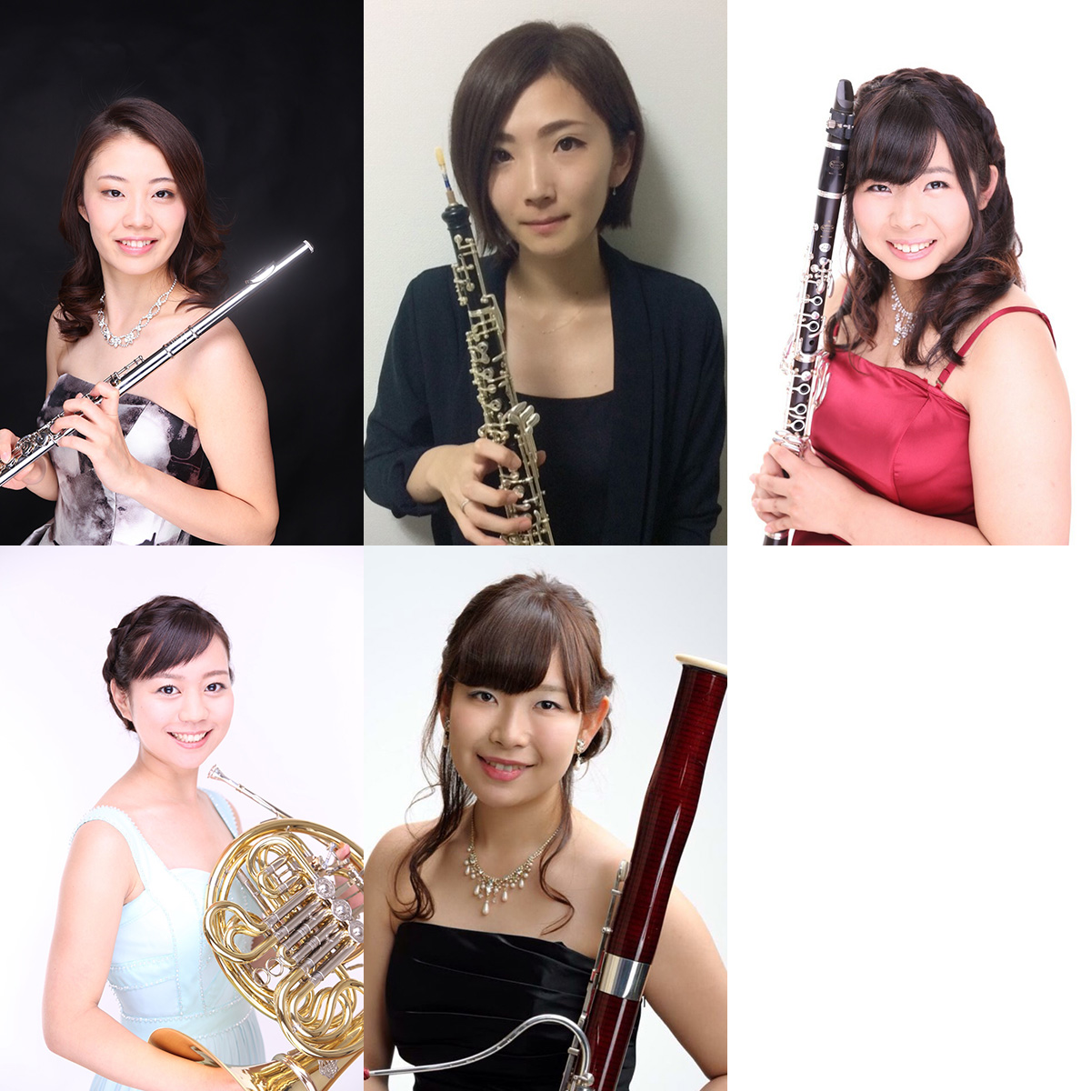 出演者 長沼 侑奈(ながぬま ゆな)/フルート高橋 早紀(たかはし さき)/オーボエ土岐 香奈恵(とき かなえ)/クラリネット堀口 はるな(ほりぐち はるな)/ホルン大島 理恵子(おおしま りえこ)