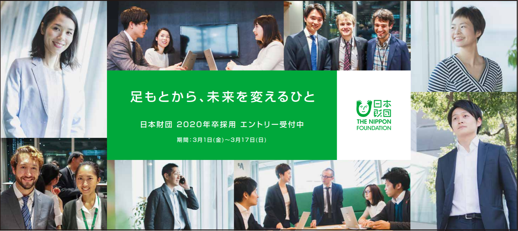 日本財団では、2020年卒業見込みの方を対象に、2020年新卒採用エントリーを開始しました。合わせて、採用情報の詳細をご紹介する採用特設ページを新たに開設しました。応募期間は2019年3月1日(金)から