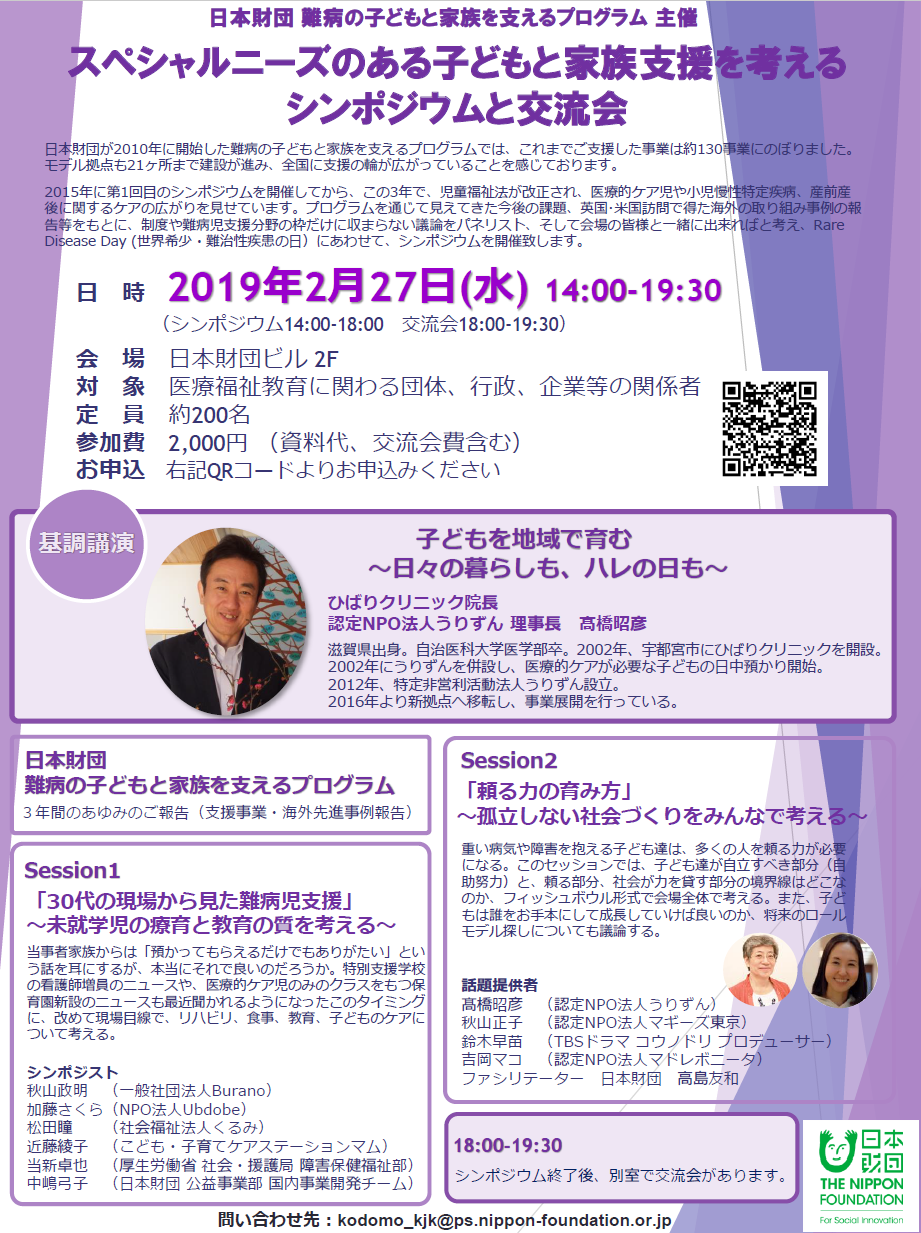 <参加者募集>スペシャルニーズのある子どもと家族支援を考えるシンポジウムと交流会