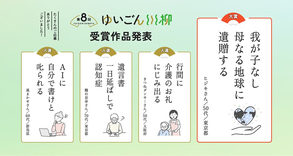 第8回「ゆいごん川柳」受賞作品決定 大賞「我が子なし 母なる地球に 遺贈する」