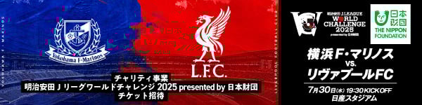2025年7月30日(水)日産スタジアムで開催される「明治安田Jリーグワールドチャレンジ2025 presented by日本財団」に、抽選で小中学生と同伴者ペア750組1,500名様をご招待いたします
