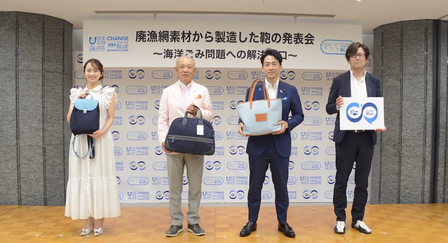 日本財団は7月20日、国内の複数企業が連携することで実現した、廃棄漁網由来の再生原料から製造した鞄の発表会と展示会を開催しました。本取り組みは海洋プラスチックごみ削減を目的としており、廃棄漁網の資源活用